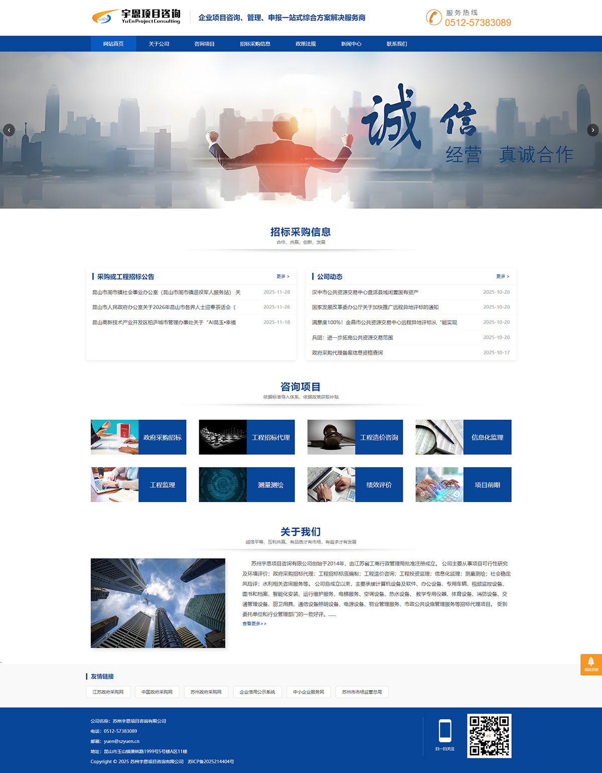 公司自成立以来,主要承接计算机设备及软件、办公设备、专用车辆、视频监控设备、图书和档案、智能化安装、运行维护服务、电梯服务、空调设备、热水设备、 教学专用仪器、体育设备、消防设备、交通管理设备、厨卫用具、通信设备照明设备、电源设备、物业管理服务、市政公共设施管理服务等招标代理项目。