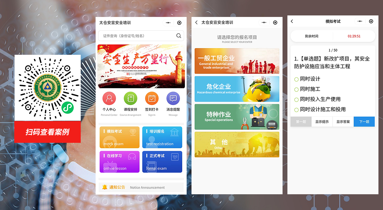太仓安宣安全技术有限公司(以下简称“太仓安宣”),是江苏省 安全生产专业培训机构之一。是经相关职能部门批准建立的集安全生 产技术教育与安全生产培训考核为一体的综合培训基地。